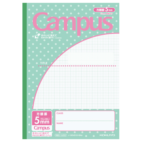 キャンパスノート(用途別) セミB5 5mm方眼10mm実線 (みずたま柄) ノ-30VS10-5NG