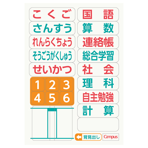 ●ひらがな・漢字の科目シール、背見出しシール付き