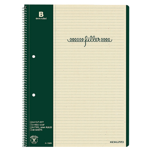 フィラーノート(スパイラルとじ) A4 2穴 罫幅6mmマージン罫入40枚 ス-15BN