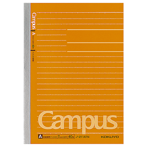 キャンパスノート(ドット入り罫線)A罫 B6(4号) 罫幅7mm 22行 40枚 ノ-211ATN