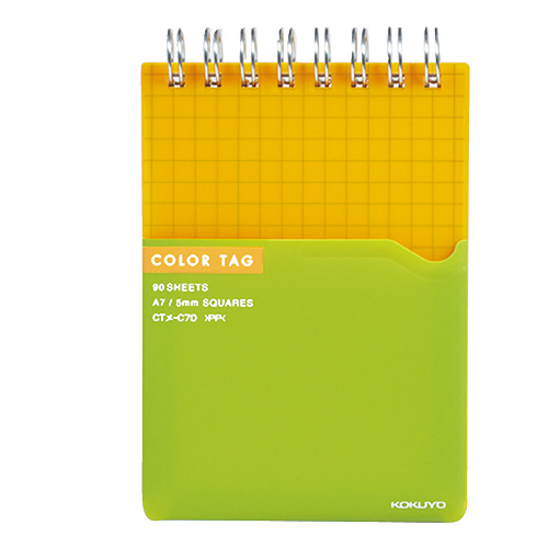 ツインリングメモ <カラータグ> A7 5mm方眼罫 90枚 イエロー CTメ-C70Y