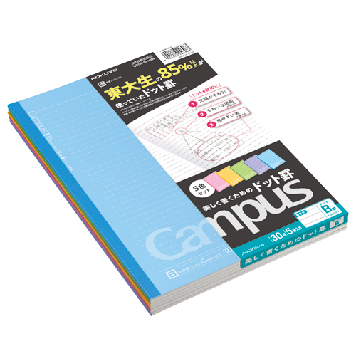 キャンパスノートカラー表紙ドット入り セミB5 罫幅6mm30枚 アソート5冊 ノ-3CBTNX5