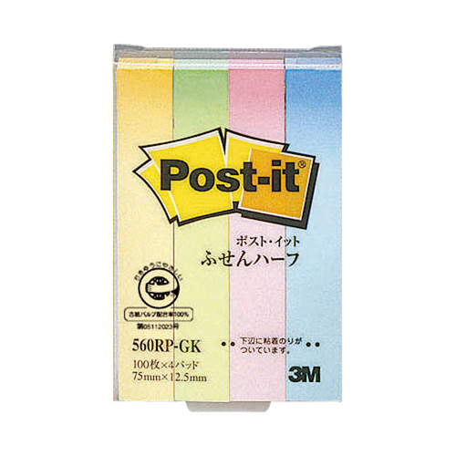 ポストイット再生紙 グラデーション 75×12.5mm 100枚×4 4色 560RP-GK