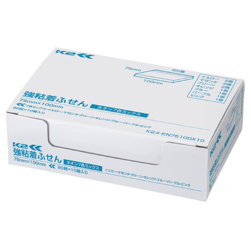 強粘着ふせんK2 75×100 10冊 ノートタイプヨコ(ネオン7色ミックス) K2メ-KN75100X10