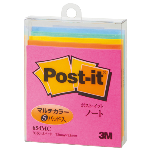 ポスト・イット マルチカラーノート 75×75mm 30枚×5 5色 654MC
