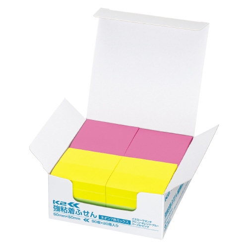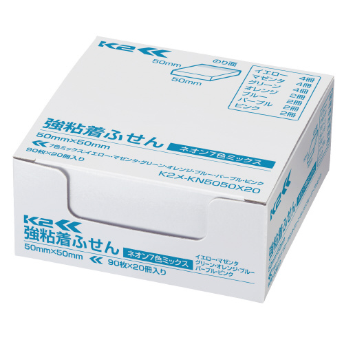 強粘着ふせんK2 50×50 20冊 ミニ正方形サイズ(ネオン7色ミックス) K2メ-KN5050X20