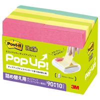 ポストイットポップアップ 強粘着 詰替 75×50mm4色混色90枚×10冊 6561SSPOP-AP