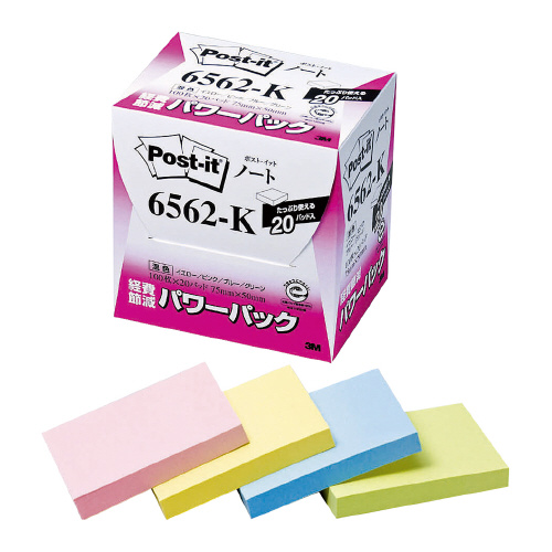 ポスト・イット再生紙ノートパワーパック 75×50mm 100枚×20 4色混色 6562-K