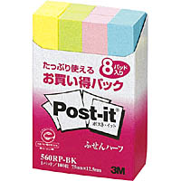ポスト・イット再生紙ふせんハーフ 75×12.5mm100枚×8 4色混色 560RP-BK