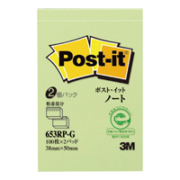ポスト・イット再生紙ノート 38×50mm 100枚×2 グリーン 653RP-G