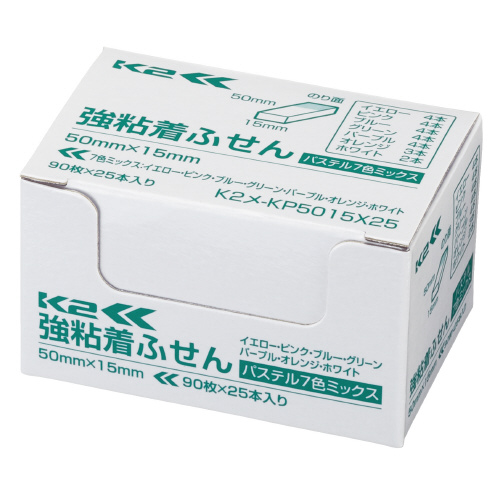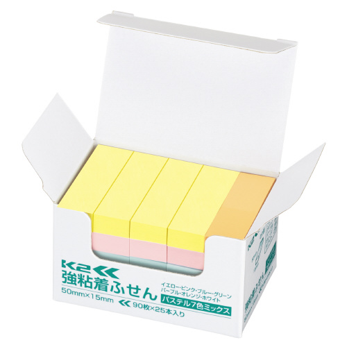 強粘着ふせんK2 50×15 25本 ミニサイズ(パステル7色ミックス) K2メ-KP5015X25