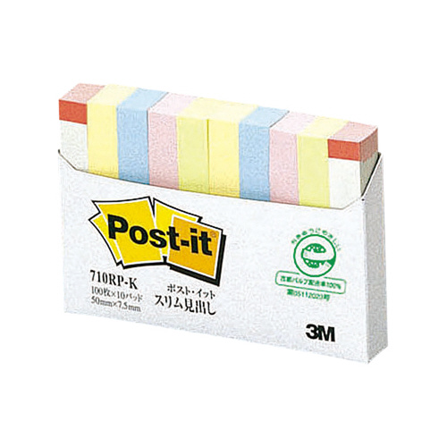 ポスト・イット再生紙スリム見出し 50×7.5mm100枚×10 5色混色 710RP-K