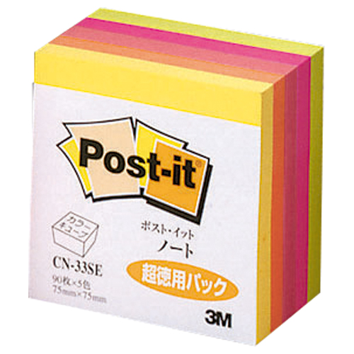 ポスト・イットカラーキューブ超徳用 75×75mm 450枚 蛍光5色 CN-33SE
