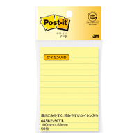 ポスト・イット 再生紙ノート 罫線入り 100×69mm 50枚 イエロー 643RP-50YL