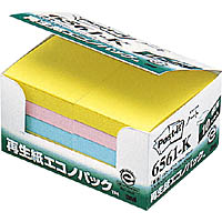 ポスト・イット再生紙ノートエコノパック 75×50mm 100枚×10 4色混色 6561-K