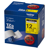 ピータッチ用TZeテープカセット 黄に黒文字12ミリ幅 5本パック TZE-631V