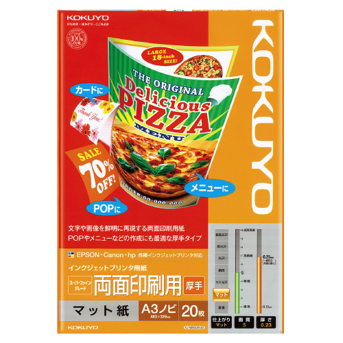 ●両面のカードやカレンダーなどに/コシのある厚手の両面印刷用紙。メニューやカード、POP、カレンダーなどの幅広い用途に対応しています。