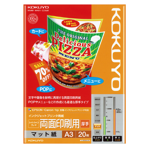 ●両面のカードやカレンダーなどに/コシのある厚手の両面印刷用紙。メニューやカード、POP、カレンダーなどの幅広い用途に対応しています。