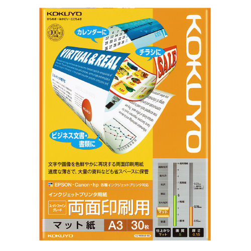 インクジェットプリンタ用紙 両面印刷用 スーパーファイングレード A3 30枚