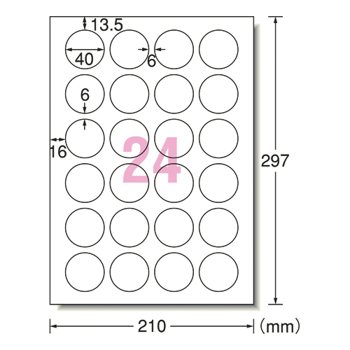 プリンタ兼用ラベルシールHGタイプ 24面 丸型 直径40mm 20枚