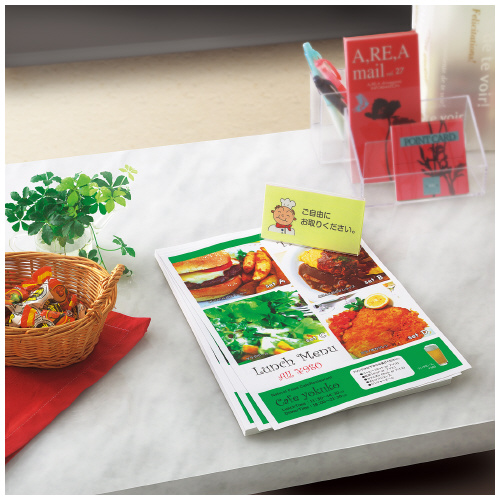 ●プレゼン書類やリーフレットを美しく仕上げたい方に。 ※用紙厚さ90g/平方メートル以上に対応する機種でお使いください。 ※印刷部分の光沢感は、お使いの機種により異なります。