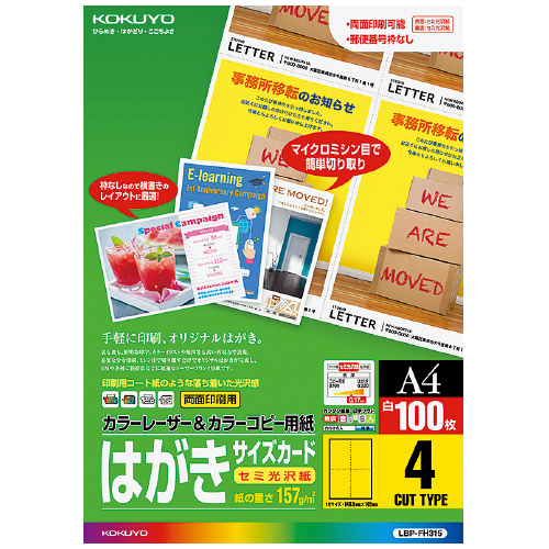はがきサイズカード セミ光沢紙100枚 カラーレーザー&カラーコピー用