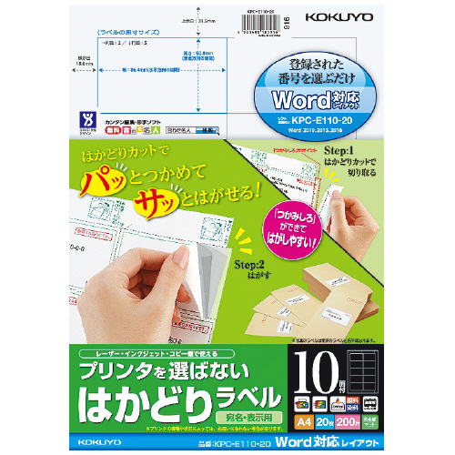 プリンタを選ばないはかどりラベル ワード対応 A4 10面 20枚入