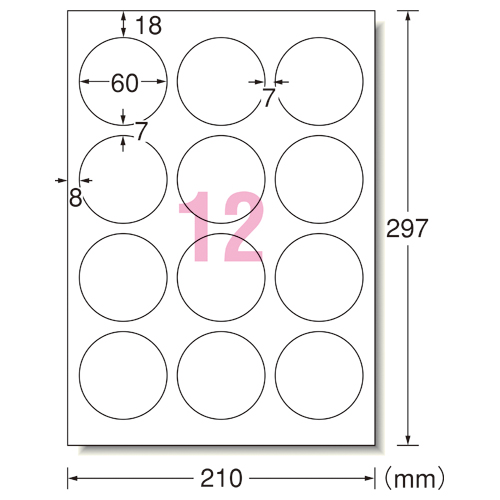 プリンタ兼用ラベルシールHGタイプ 12面丸20枚
