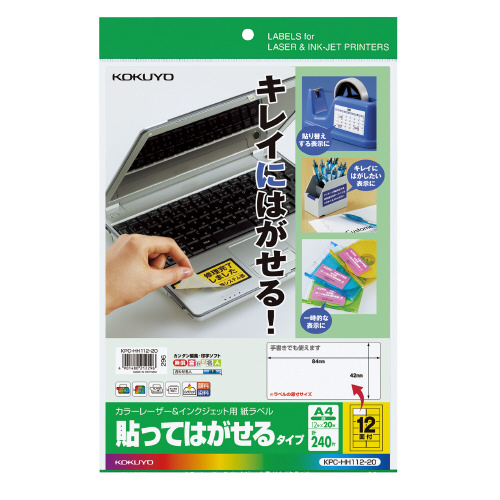 カラーレーザー&IJP用紙ラベル 貼ってはがせるタイプA4 20枚 12面