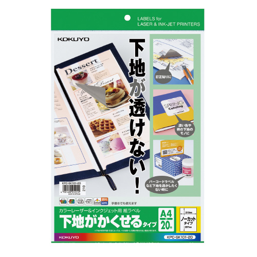 カラーレーザー&IJP用紙ラベル 下地がかくせるタイプA4 20枚 1面