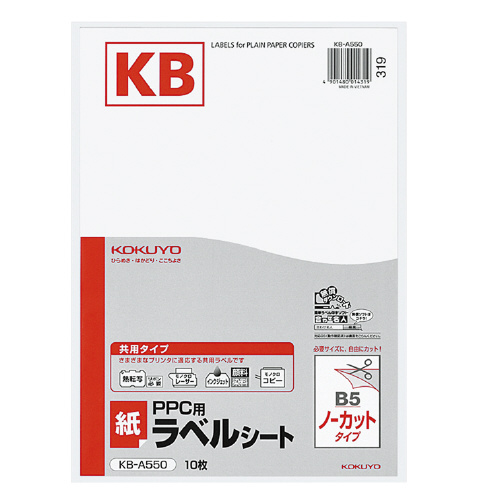 PPC用ラベルシート(共用タイプ) B5 ノーカット 10枚入