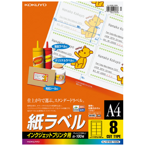 インクジェットプリンタ用紙ラベル A4 100枚入 8面カット