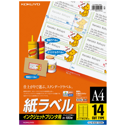 インクジェットプリンタ用紙ラベル A4 100枚入 14面カット