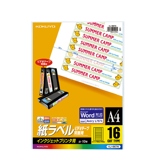 インクジェットプリンタ用紙ラベル A4 16面カット ビデオテープ背面用