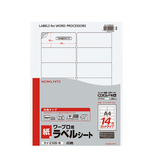 ワープロ用ラベルシート(共用タイプ) A4 20枚入 リコー・日立対応