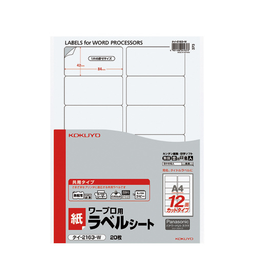 ワープロ用ラベルシート(共用タイプ) A4 20枚入 パナソニック対応