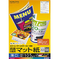 カラーレーザー&カラーコピー用紙 両面印刷用マット紙 薄口A3 100枚