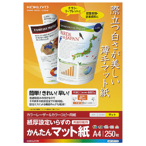 LBP&カラーPPC用かんたんマット紙 特薄口 A4 250枚