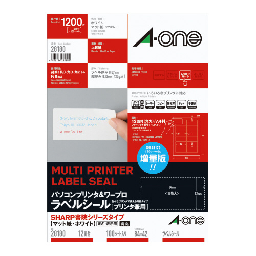 パソコン&ワープロラベルシール [プリンタ兼用]SHARP12面100枚