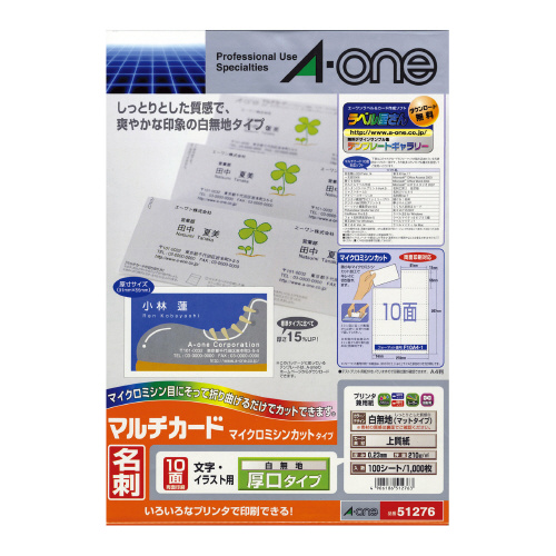 エーワン マルチカード 名刺サイズ 白無地 厚口タイプ
