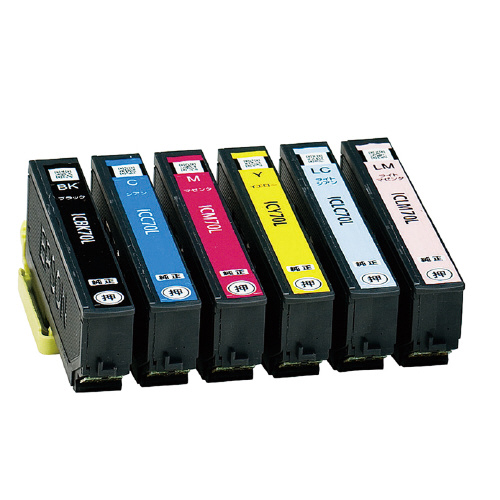 ●6色パック(増量タイプ):ブラック(型番:ICBK70L)・シアン(型番:ICC70L)・マゼンタ(型番:ICM70L)・イエロー(型番:ICY70L)・ライトシアン(型番:ICLC70L)・ライトマゼンタ(型番:ICLM70L)