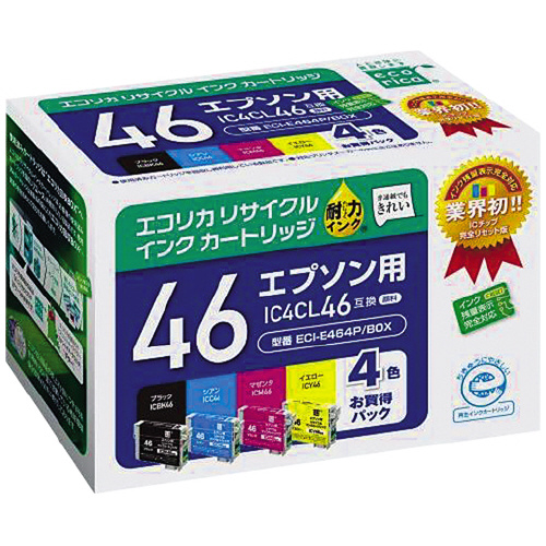 リサイクルインク エプソン対応 IC4CL46 カラー(4色パック) ECI-E464P/BOX