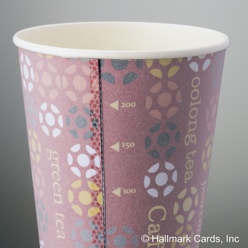 ●ホールマーク社デザイン。カップ表面にフィルムの気泡層があるので中の飲み物の温度を手に伝えにくく、持って熱く感じにくいカップです。