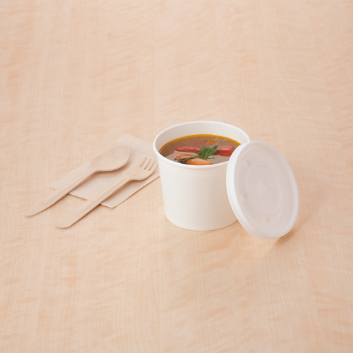 ●汁物もこぼれにくいラミネート加工のカップ。スープ以外に、デザートやサラダにも!