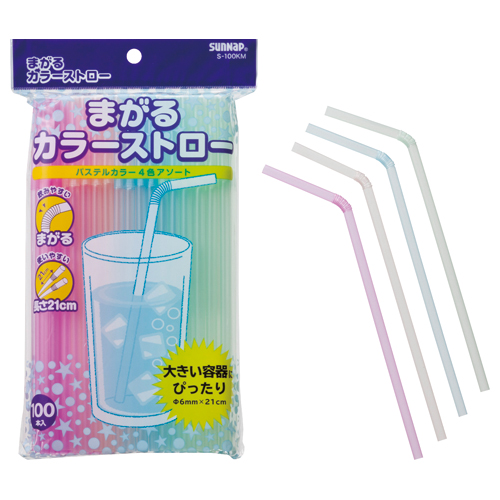 曲がるカラーストロー 21cm 100本 S-100KM