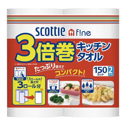 スコッティファイン3倍巻キッチンタオル 150カット 2ロール 33245