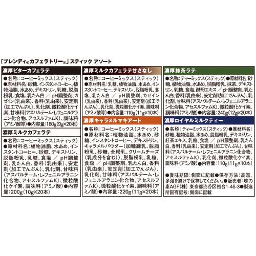 ●アソート内容/濃厚ビターカフェラテ、濃厚ミルクカフェラテ、濃厚キャラメルマキアート、濃厚抹茶ラテ×各20本、濃厚ミルクカフェラテ甘さなし、濃厚ロイヤルミルクティー×各10本
