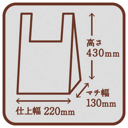●西日本号数/35号●機能/エンボス付●東日本号数/20号●総幅(仕上幅+マチ)×高さ(mm)/350(220+130)×430●カラー/乳白●材質/高密度ポリエチレン●厚さ/0.014mm●生産国/中国