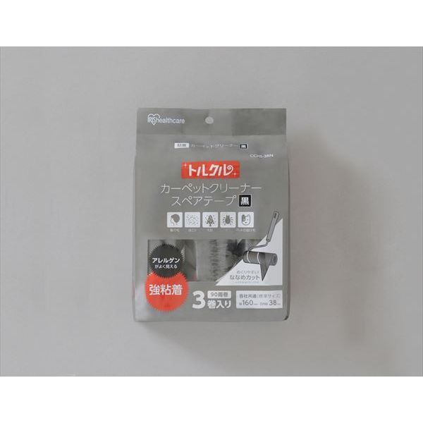 商品の説明色:3)ブラック(ななめカット)?|?パターン(種類):2)スペア3本きれいにはがせるアイリスオーヤマのななめカット粘着テープがリニューアル! はがす部分も分かりやすいカラーになり、めくりやすくなりました。アレルゲンが見えるブラックが登場!