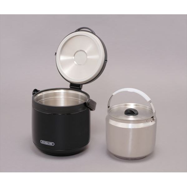商品の説明サイズ:4.5L?|?カラー:ブラック火を使わないで煮込むので、安全・節約。余熱調理と長時間保温で、日々の暮らしがぐっと楽に!煮物も、スープも、置いておくだけ。煮くずれしないで具材やわらか♪■余熱調理煮込む作業は「おまかせさん」にお任せ。火にかけているのを忘れる心配がなく、加熱時間も短いので、安全、節約。■長時間保温高い保温力で高温をキープ。家族の帰りが遅くて食事時間がずれても温め直しが必要ありません。“ふた”と“本体”の両方が真空のダブル真空保温調理鍋で、高い保温性能を実現。ふたを真空断熱構造に改良することで熱が逃げにくく、より長い時間高い温度を保つことが可能になりました。ワインクーラーなどの保冷容器としても使用できます。初心者でも安心♪「14のレシピ」と「調理ポイント」を掲載したレシピブック付き。【便利な機能】・ロック機能付きで小さなお子様のいるご家庭にも。・調理鍋のふたは保温容器の内側に取り付けできます。・保温容器のふたは取り外しができます。